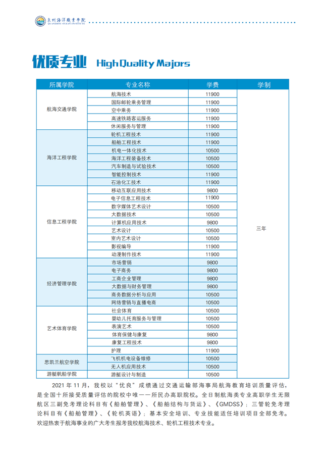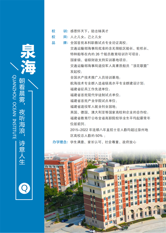 泉州海洋职业学院2023年招生简章