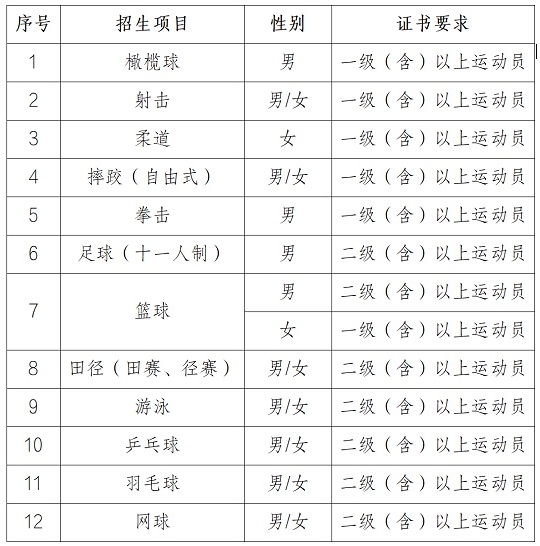 按照体育总局办公厅《关于做好2024年高校保送录取优秀运动员有关事宜的通知》(体科字〔2023〕178号)文件执行,招生专业为运动训练,招生项目为橄榄球(7人制)、射击。