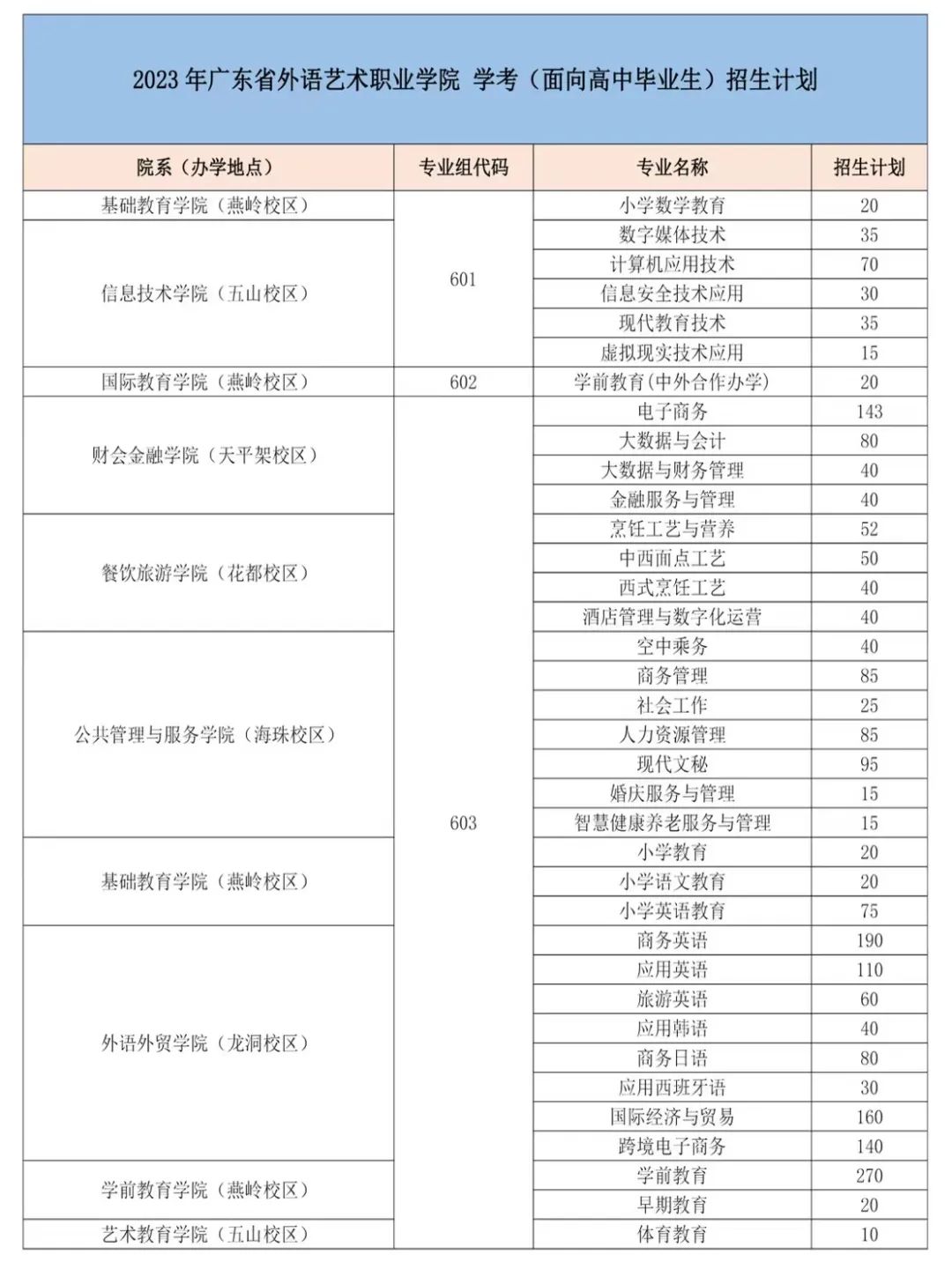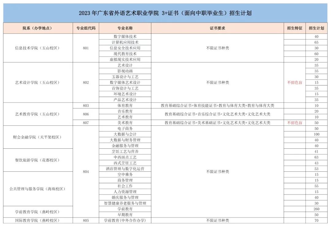 2023年我校春季高考招生计划4225人,其中3+证书招生计划1485人;依学考招生计划2740人(普通类:2295人、美术类:265人、音乐类:140人、舞蹈类:40人)。以上计划最终以广东省教育考试院公布为准,欢迎广大考生报考。