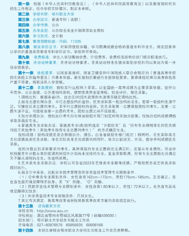 鄂州职业大学2023年招生简章