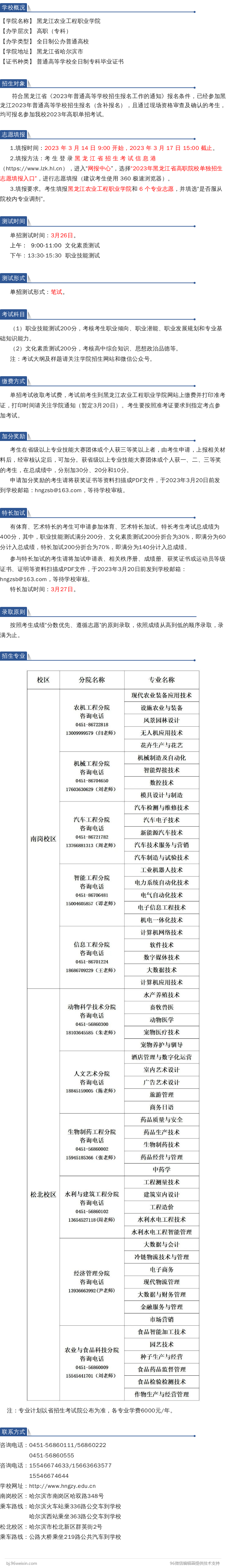 黑龙江农业工程职业学院2023年单独招生简章