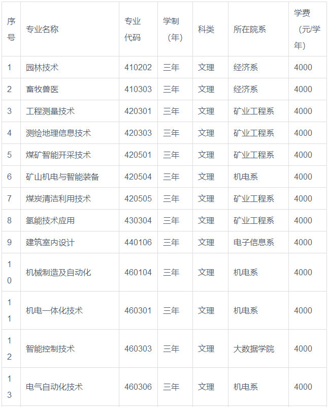 注:园林技术、畜牧兽医两个专业在吕梁职业技术学院的产业学院——吕梁市农业学校就读,地址:山西省吕梁市离石区滨河北东路40号。