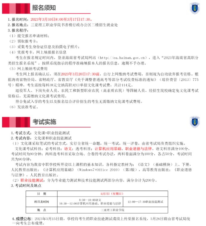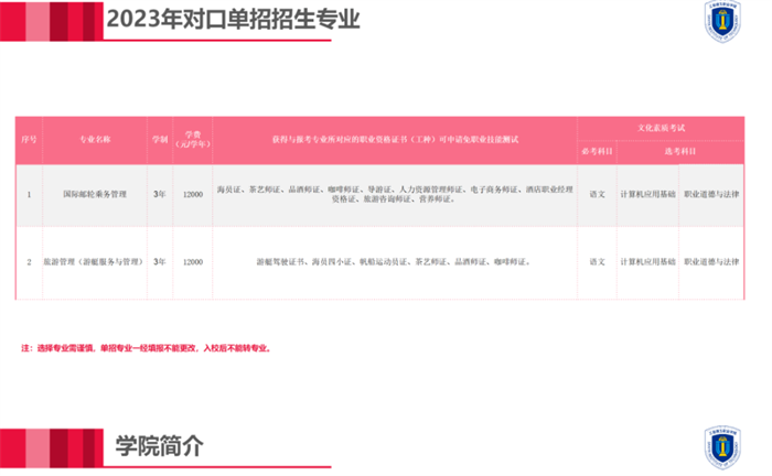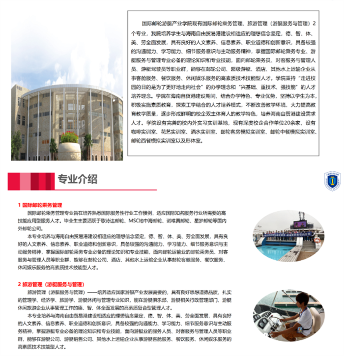 三亚理工职业学院国际邮轮游艇学院2023年对口单招招生简章