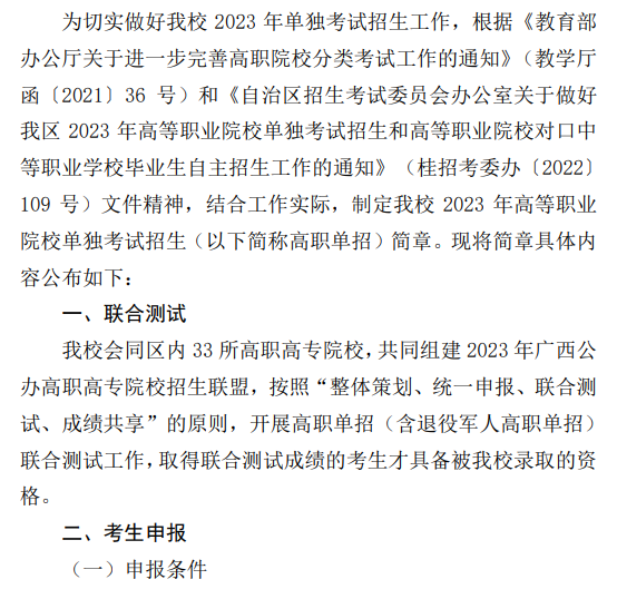 广西国际商务职业技术学院2023年高职单独考试招生简章